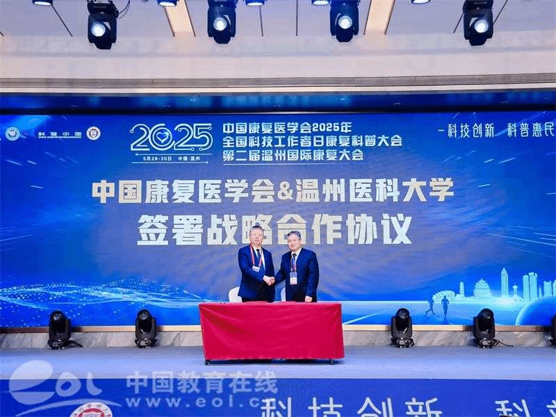 To deepen the integration of industry, academia, and research, the Chinese Association of Rehabilitation Medicine and Wenzhou Medical University have signed a strategic cooperation agreement. The two parties will jointly establish a collaborative laboratory for rehabilitation medicine to advance the development of intelligent rehabilitation equipment; foster a high-level talent pipeline through joint cultivation of master's and doctoral students; and implement training programs for grassroots rehabilitation physicians to enhance regional service capabilities. This collaboration will inject innovative momentum into the field of rehabilitation medicine and facilitate the translation of scientific and technological achievements into practical applications.
